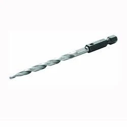 Tapered drill with widened flutes for drilling fast, clean pilot holes. 1/4 in quick change shank reduces slipping in standard chucks and is compatible with all 1/4 in quick change chucks, including impact drills. Adjustable four-cutter counterbore cuts and clears chips quicker for fast, smooth countersinking. Counter bore attaches to flats on shank with two hex screws for a secure fit and can be adjusted for controlled pilot hole depth.